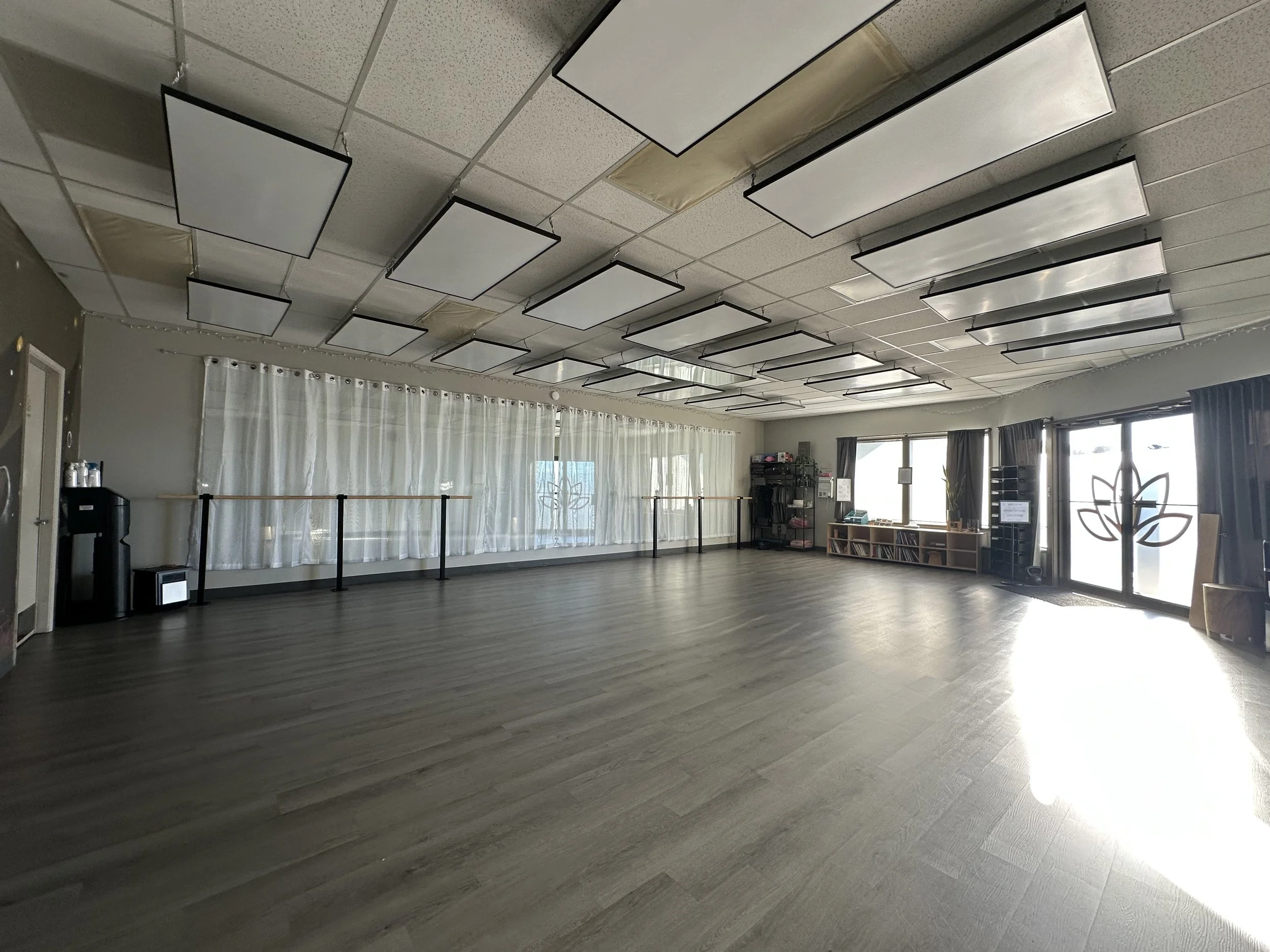 Our studio is a spacious 800 square feet that accommodates 20+ students. Included is use of fitness equipment (email us for details), Zoom capabilities and we can post about your special event on our social media, too.